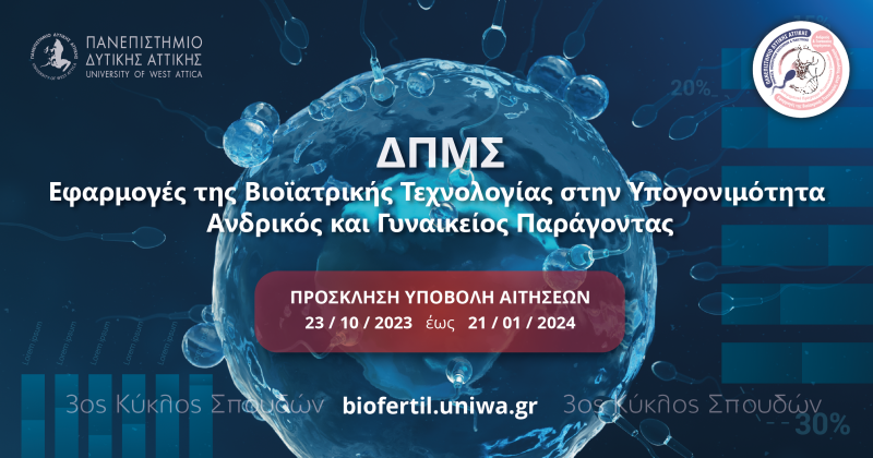 17 Οκτ Πρόσκληση υποβολής υποψηφιοτήτων ακαδημαϊκού έτους 2023-2024 για το ΔΠΜΣ Εφαρμογές της Βιοϊατρικής Τεχνολογίας στην Υπογονιμότητα – Ανδρικός και Γυναικείος Παράγοντας